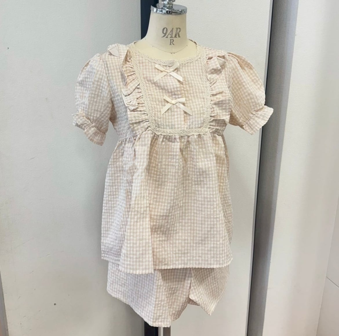 リボンやフリルがポイントのチェック柄パジャマ