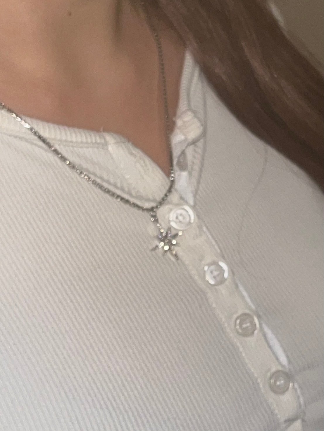 シンプルで上品なシルバーチェーンに、輝く星 型チャームをあしらったネックレス。