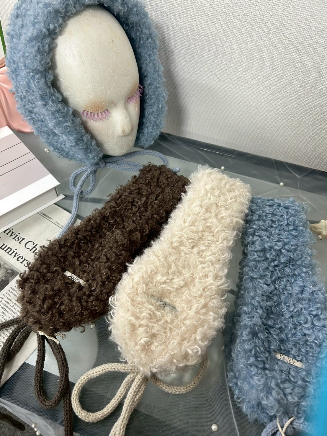 今季大注目の、くるくるとした巻き毛が特徴のボア素材を使用したイヤーマフです。