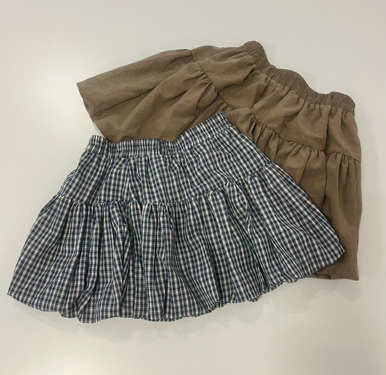 裾に向かってふんわりと広がるティアードデザインが、ガーリーな魅力を引き立てるミニスカートです。