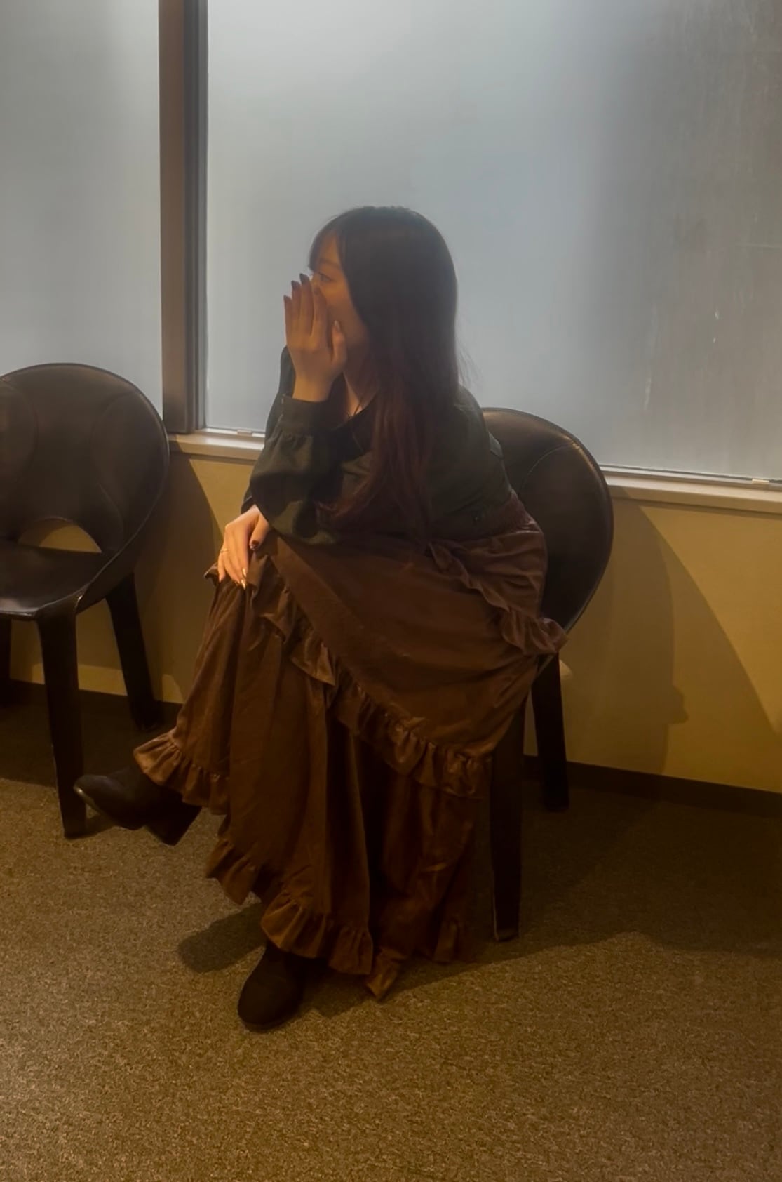 微起毛感のある暖かな素材は、これからの季節にぴったりです。贅沢なギャザー使いの多段ティアードデザインが、歩くたびに揺れ、女性らしさを最大限に引き立てます。