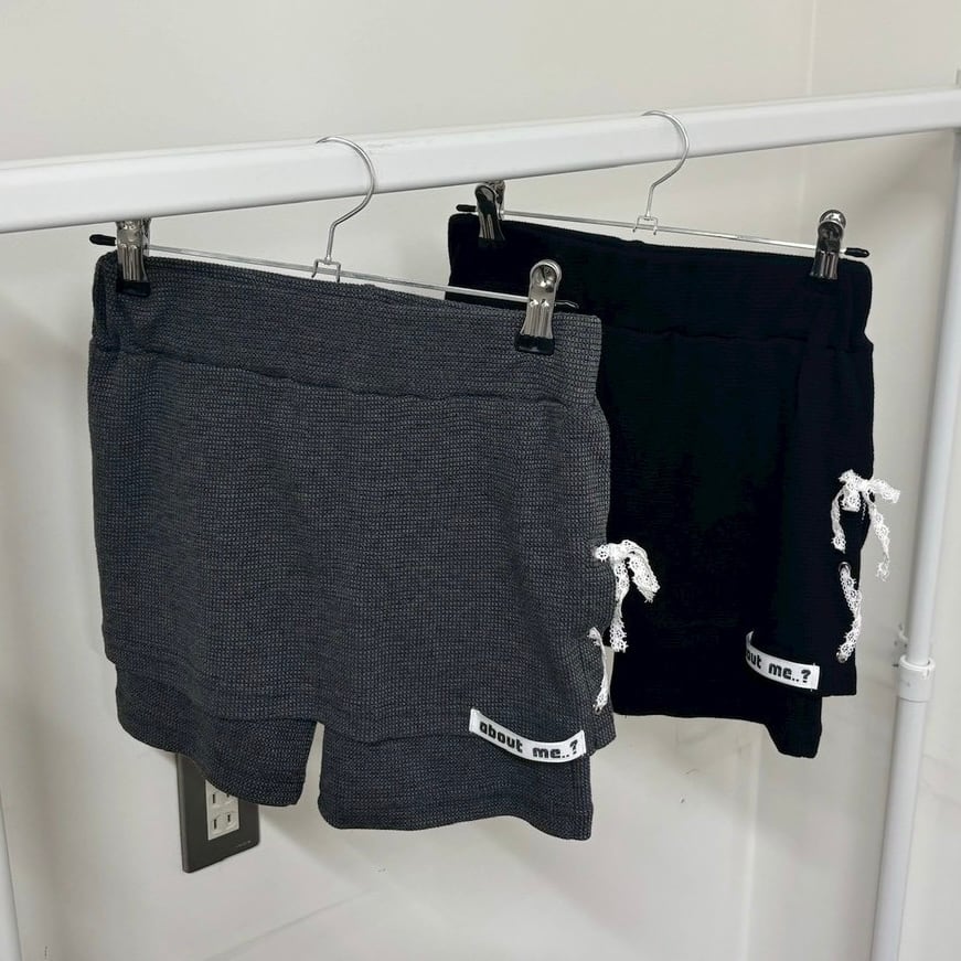 流行りのインパン付きニットスカート!グレーと黒の2色展開♪オーバー目のパーカーともピッタリ目のトップスとも相性ばっちり◎‼ ウエスト30cm スカート丈26cm インパンツ丈34cm カラー:black、grey