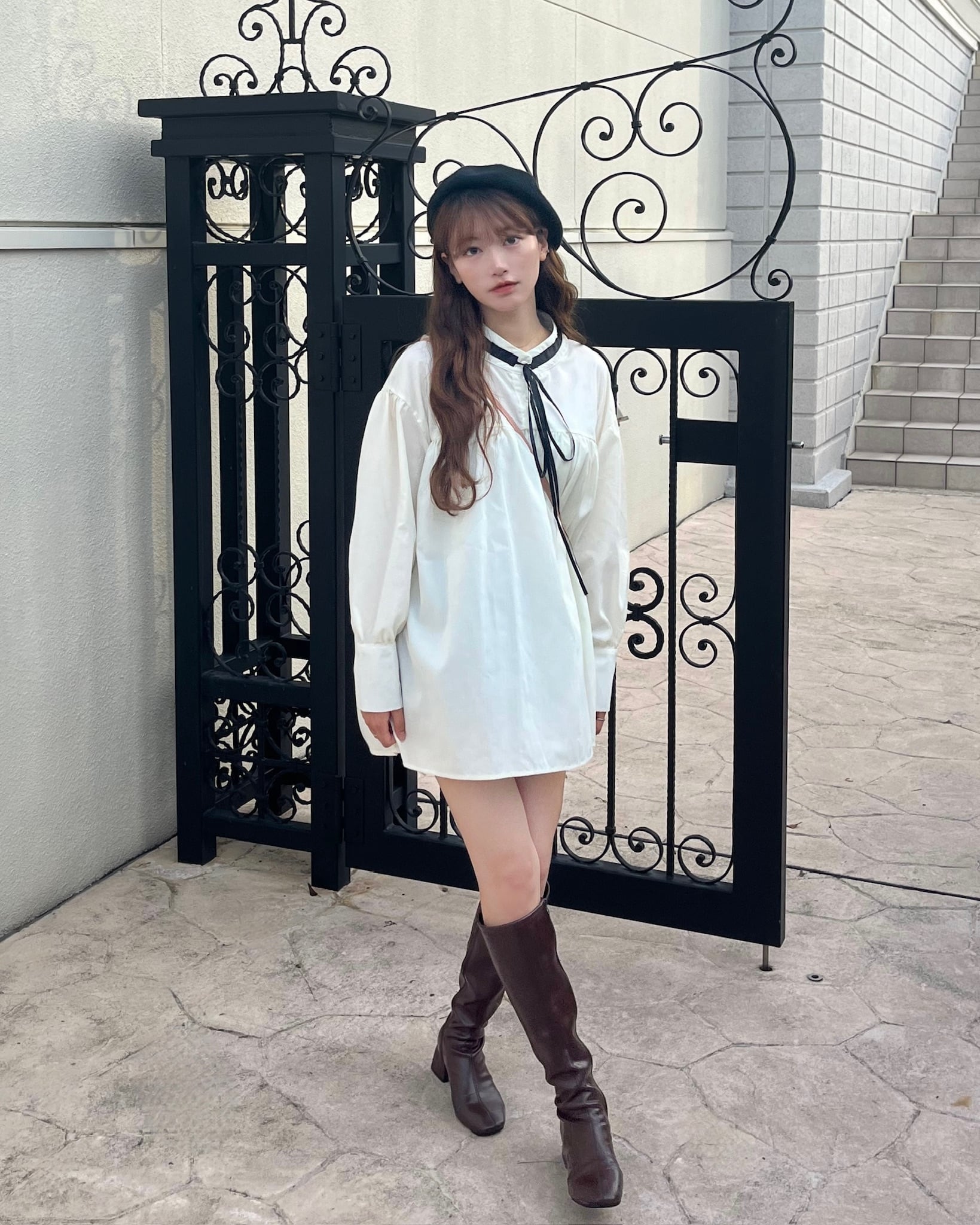 ・トップスとしても使えるので脚を出したくない方にはデニムやスラックス合わせのスタイリングもおすすめ◎
