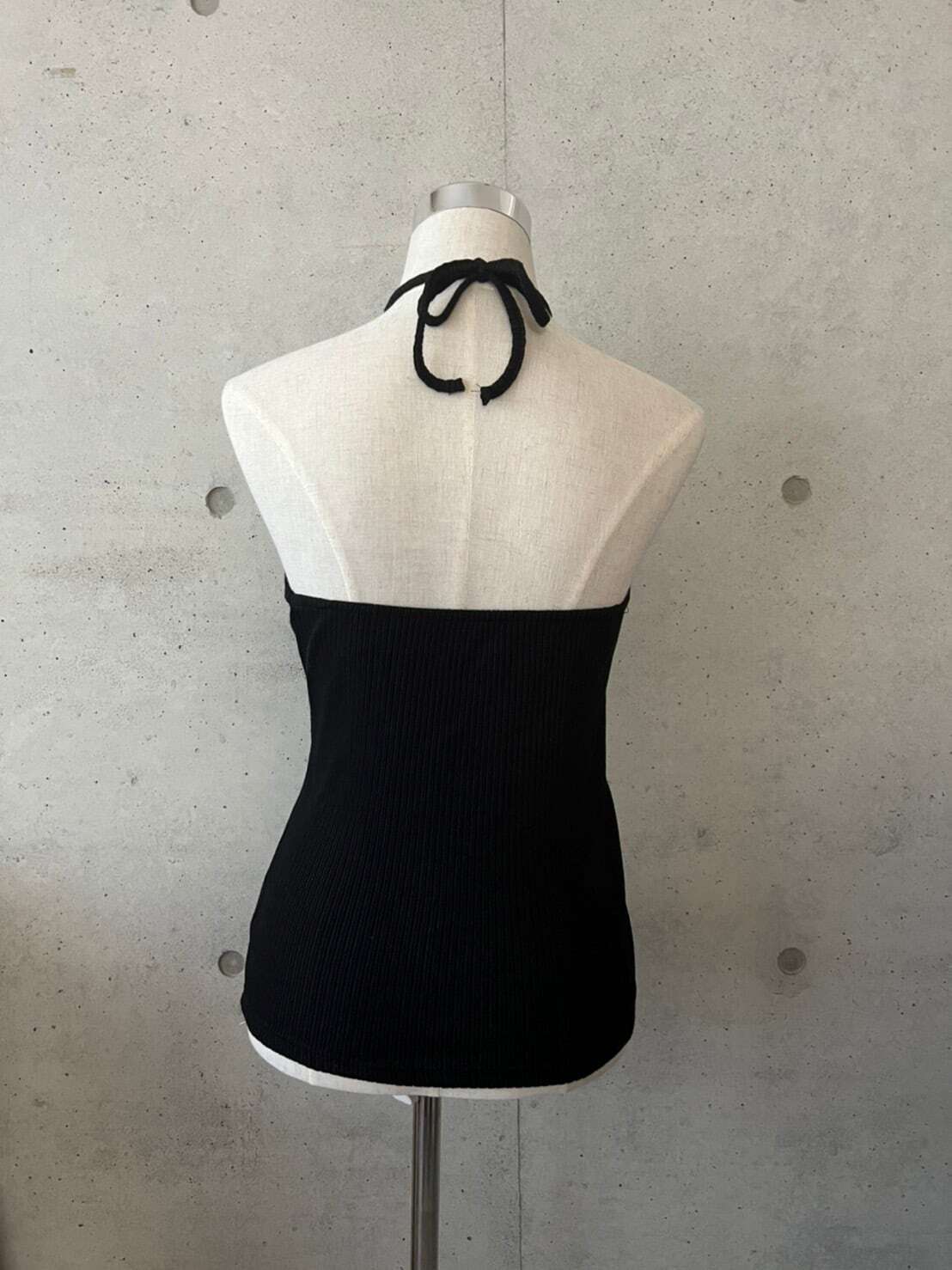 様々なレイヤードスタイルで活躍するホルターネックタイプのキャミソール。 前から見るとセクシーにバックデザインはリボンが見えてキュートな印象も与えてくれます。 モデル身長:153cm 身幅29cm 着丈50cm 素材:ポリエステル95% ポリウレタン5%