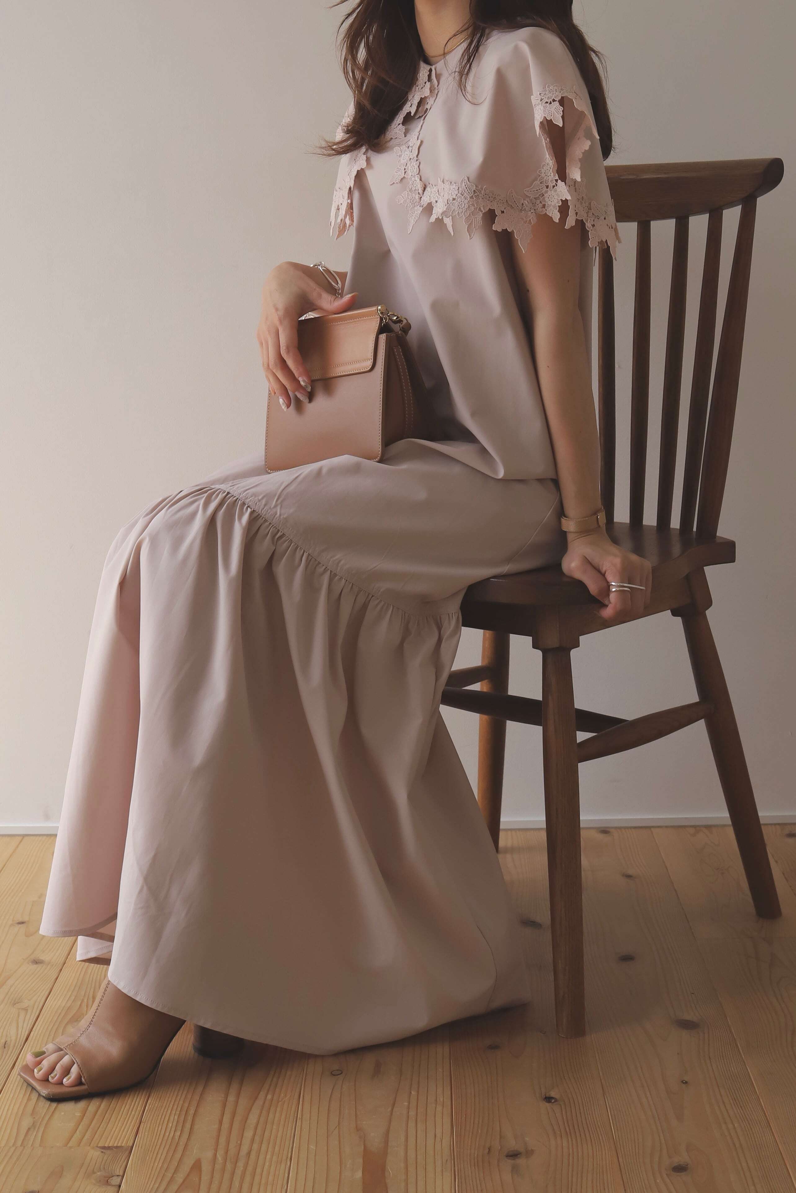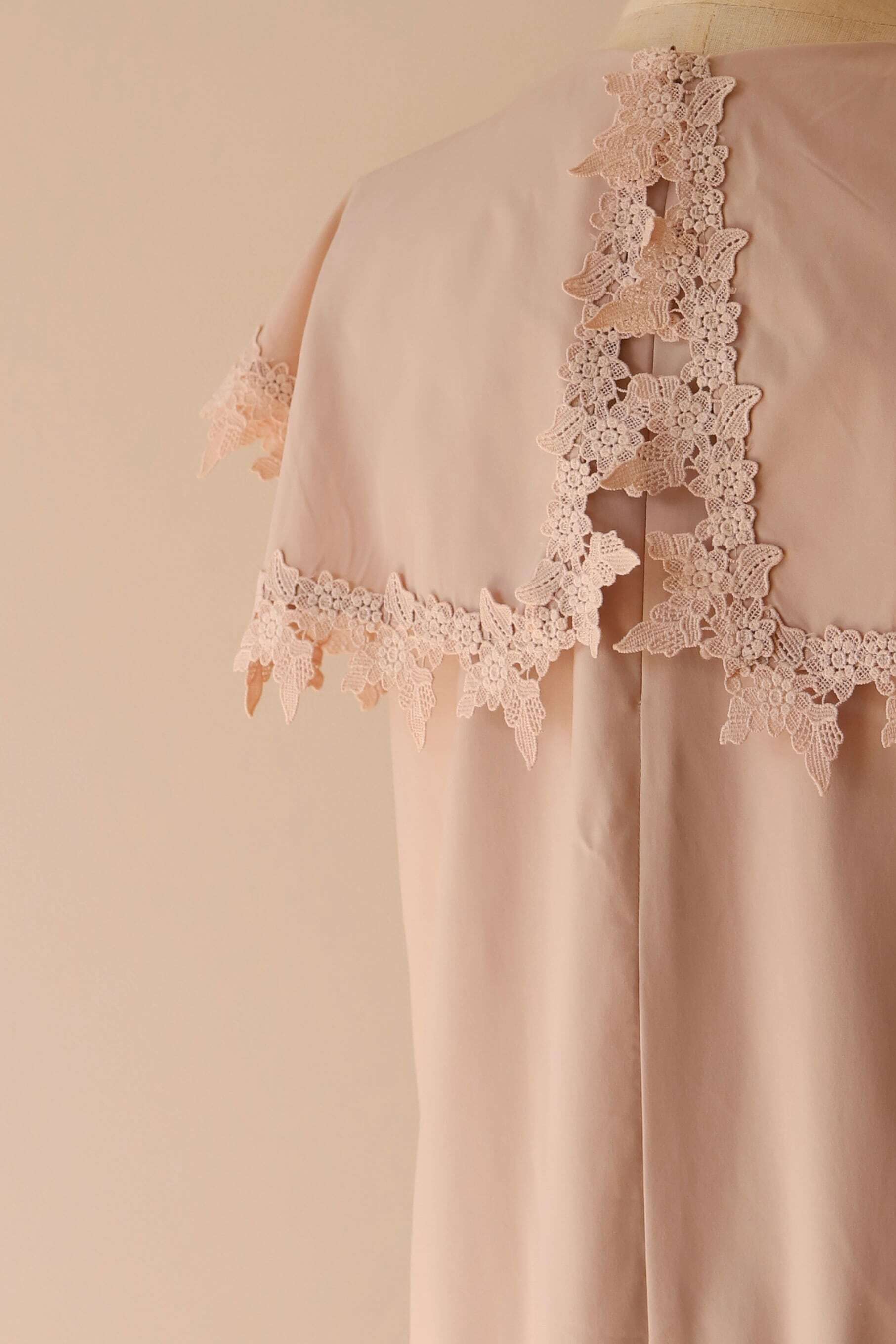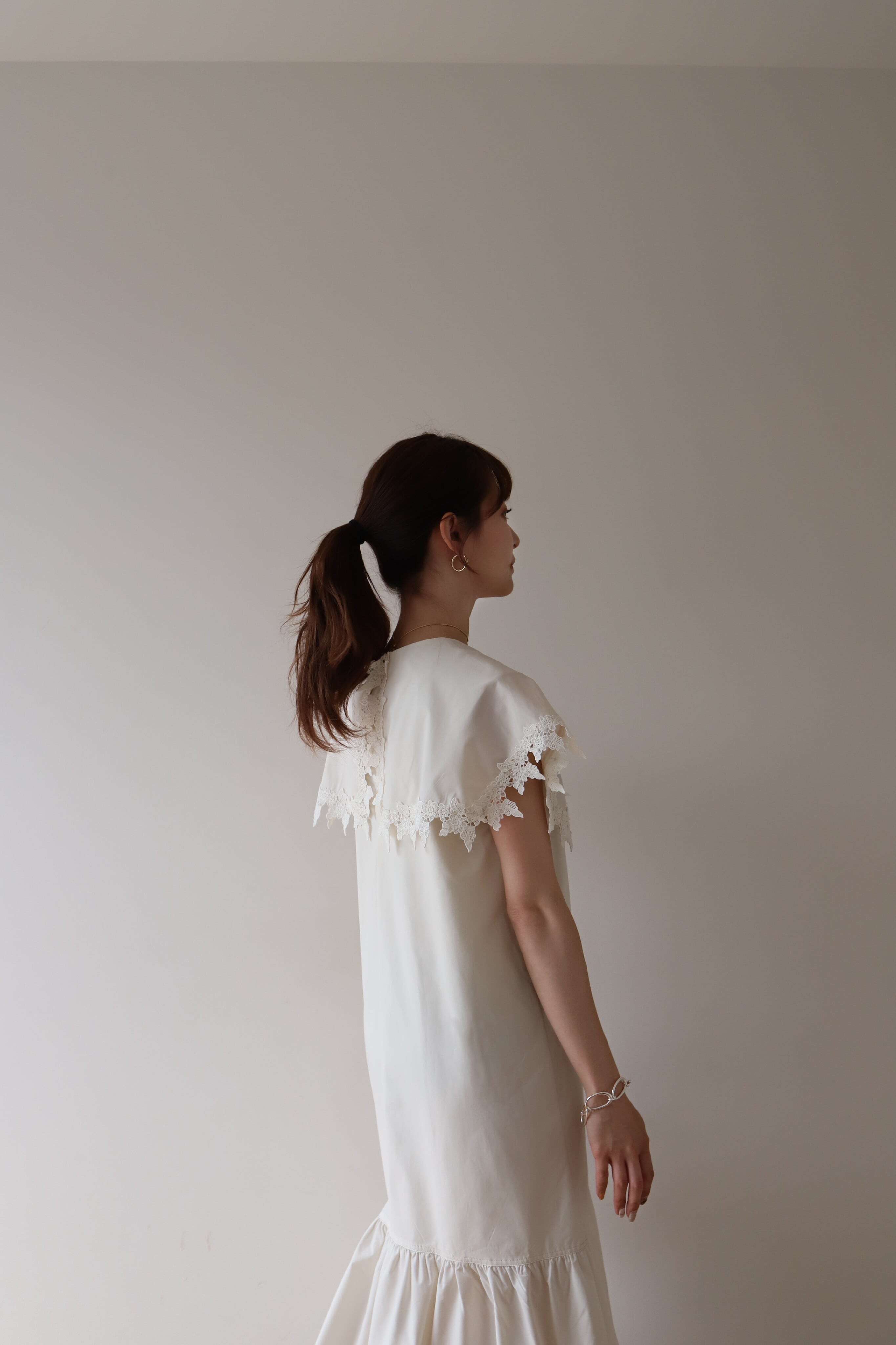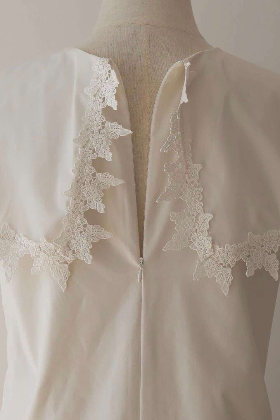 セーラーカラーには繊細ながらも大ぶりなモチーフレースをあしらい