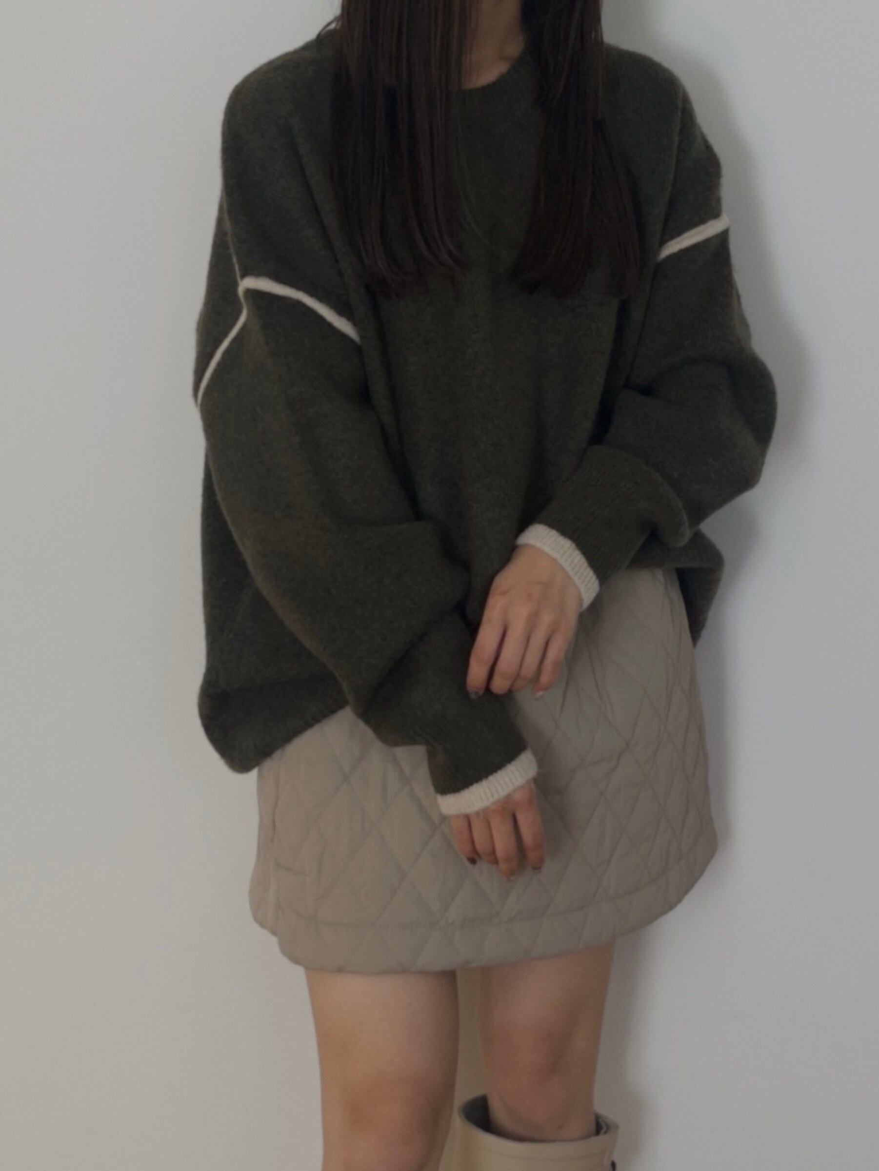 キルティング素材が目を惹く一枚。 ワンパターンになりがちな秋冬のコーディネートに差をつけてくれるアイテムです。 ウエストはゴム仕様で、 厚手のニットやスウェットも 着心地良く合わせていただけます。 color:beige
